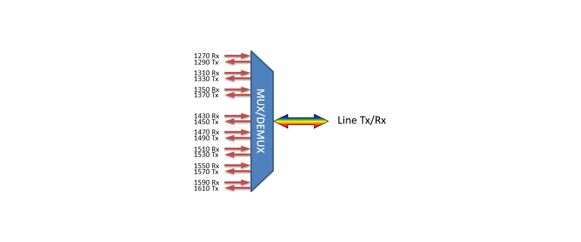 • Coarse WDM in compliance with ITU-T G.694.2
