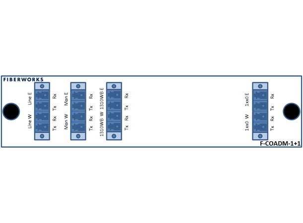 Fiberworks 1+1 ch. CWDM OADM w/mon.ports East+west, LC Fiberworks 1+1 ch. CWDM OADM w/mon.ports East+west, LC Fiberworks 1+1 ch. CWDM OADM w/mon.ports East+west, LC Fiberworks 1+1 ch. CWDM OADM w/mon.ports East+west, LC