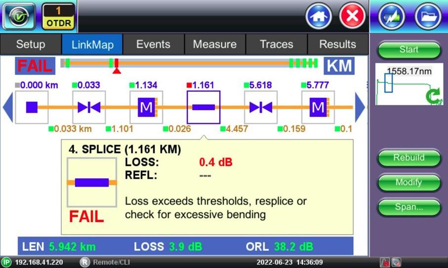 a. Rettet problem som forårsaket intermitterende, feilaktige Automode-målingsresultater ved testing av korte fibre for OTDR-er med serienummerprefiks TAC og TNU.